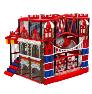 • Materials: Soft play modules use non-toxic, stain-resistant fabric in the classic color scheme, while climbing frames have rounded edges and foam padding. The “landmark” structures (e.g., the Tower of London frame) are reinforced with sturdy, child-safe plastic to handle rough play.