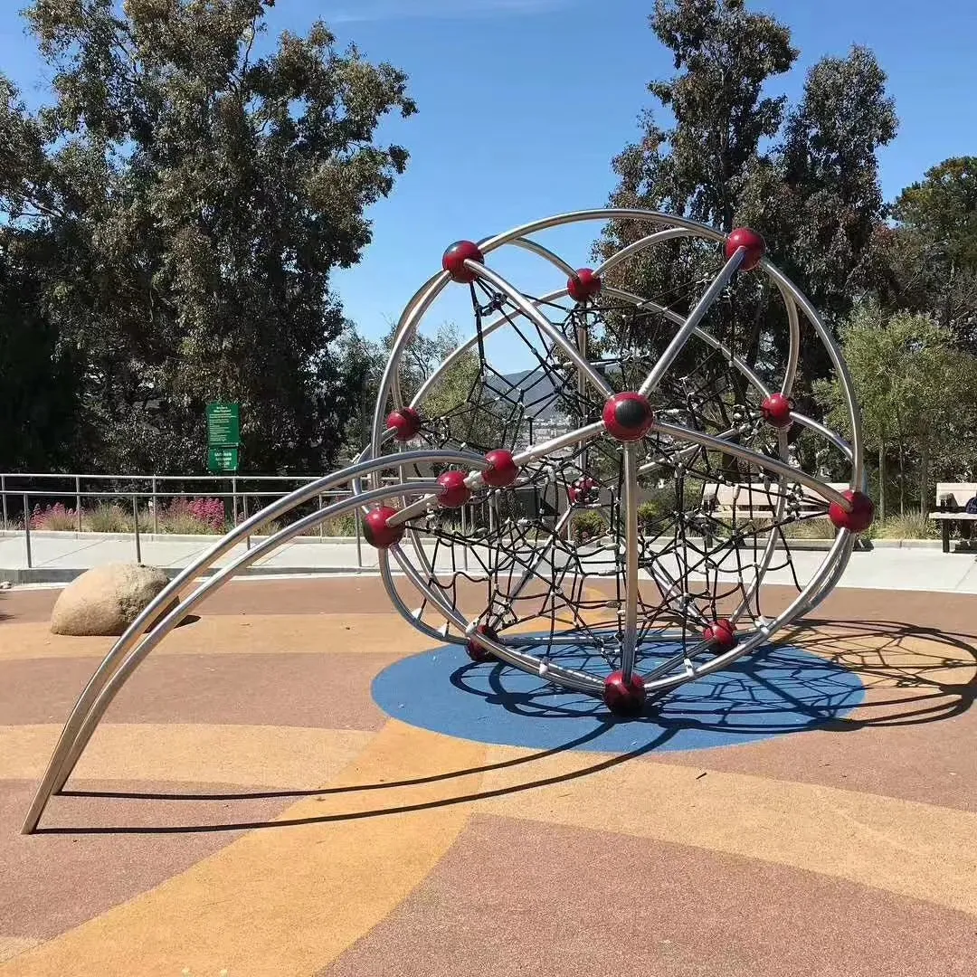 This is an outdoor children’s dome climber playset amusement facility, which belongs to climbing and expansion equipment. It is mainly red, with yellow components, and has elements such as mesh structures and swings. Various colors and sizes can be customized. It is made of 114 galvanized pipes and marine cables. Such facilities are commonly used in parks, kindergartens and other places. They can exercise children’s sense of balance, coordination and physical strength. At the same time, they provide children with a space for playing and exploring, helping them grow up in games.