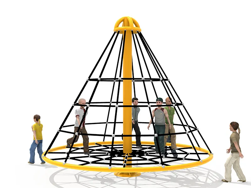 Think gentle-spinning swivel bars that kids can hold onto as they climb or small rotating platforms attached to the frame, adding a playful twist to traditional climbing.